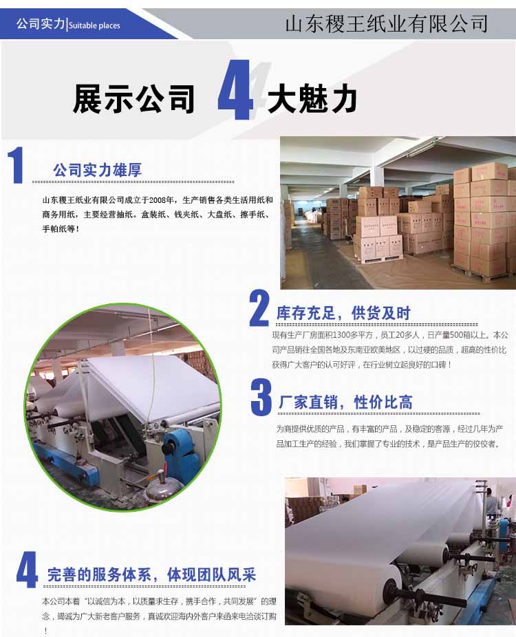山東稷王紙業(yè) 盒抽紙(http://www.ddqx.cn/)本站聲明:本公司專業(yè)定做廣告盒抽紙,廣告抽紙,廣告錢夾紙,ktv盒抽紙,汽車4s店盒抽紙,酒店餐巾紙等,山東商務(wù)用紙高端定制第一品牌廠家,歡迎廣大客戶前來洽談。定制熱線:13188879008
