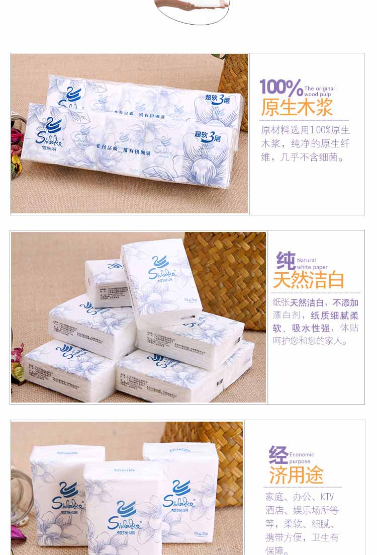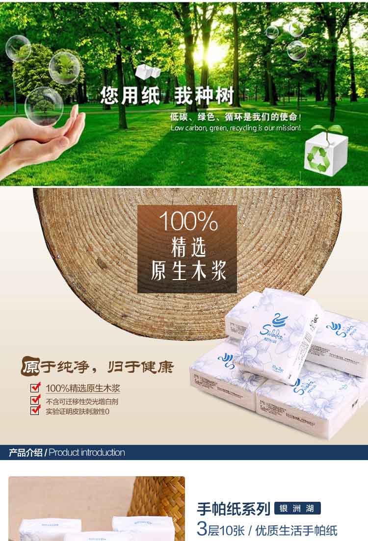 專業(yè)生產(chǎn)荷包紙巾、禮品紙巾.盒裝面巾紙,主要面向娛樂KTV、賓館、飯店、及酒店訂貨和訂制品加工,時時刻刻在您的身邊為您服務(wù)著。作為一家專業(yè)性生產(chǎn)生活用紙的單位,為了消費者的滿意,我們以高質(zhì)量、高標準的生產(chǎn)一直服務(wù)在您的身邊。“以人為本、德制兼治”是公司的經(jīng)營理念,“質(zhì)量第一、用戶至上、經(jīng)營以信”是公司的經(jīng)營宗旨,“用戶的滿意和夢想”是我們公司的追求目標,我們要以優(yōu)異的產(chǎn)品,可靠的質(zhì)量為標準,與廣大客戶一起并肩攜手,共同發(fā)展。