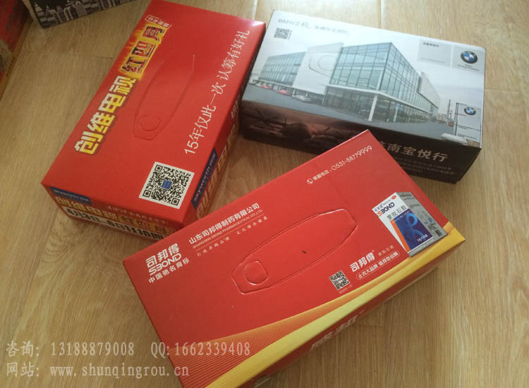 盒抽紙隨著作為一種具有商業(yè)性質(zhì)的促銷品和廣告禮品,越來(lái)越多的用于酒店,餐飲企業(yè),企業(yè),娛樂(lè)休閑場(chǎng)所,汽車行業(yè),銀行等。